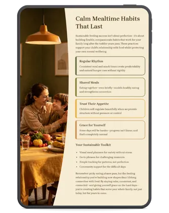 BONUS #7: 5 Calm Mealtime Replacements for Screens: A guide packed with screen-free strategies to keep toddlers engaged (and off your phone) at the table.